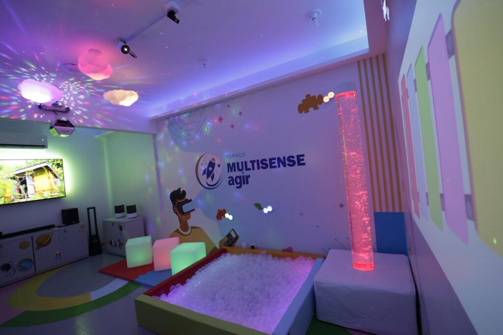 A unidade conta com espaços projetados para estímulos sensoriais. O Jardim Molhado promove o contato das crianças com a água e a natureza. A Sala Multisense oferece recursos de luz, som, texturas e estímulos controlados.