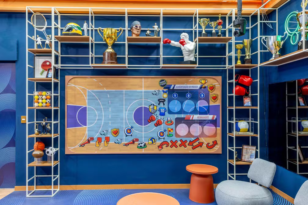 A academia do BBB 26 presta homenagem a atletas olímpicos e reúne itens simbólicos ligados ao esporte. Já os demais espaços seguem a proposta visual da temporada, com cores e objetos que dialogam com o tema escolhido.